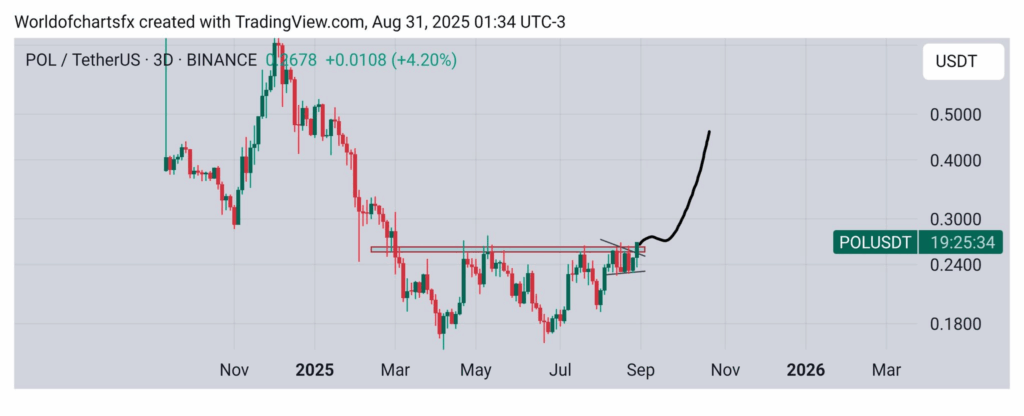The repeated testing of this upper resistance level is particularly noteworthy. In market analysis, such consistent pressure can weaken a resistance point over time, increasing the probability of an eventual upward breach. Analysts suggest that a decisive and high-volume move above $3,87 would serve as a strong bullish confirmation. A successful breakout could pave the way for a rally, with market participants eyeing a potential move toward the psychologically significant $4,50 level.