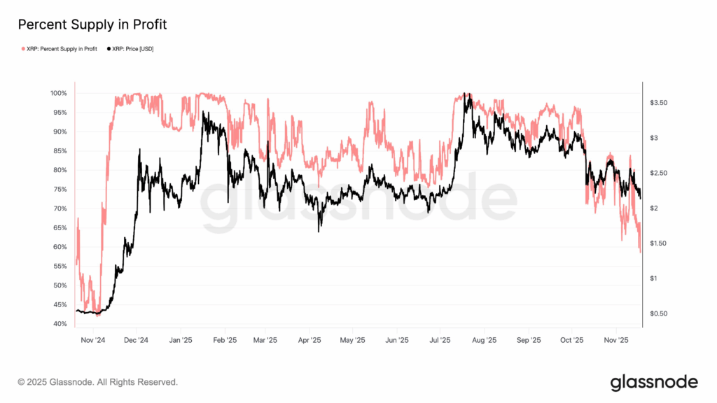 Ripple’s native token, XRP, is navigating one of its most precarious phases of the past year, caught in the crosscurrents of a risk-averse financial climate and an increasingly fragile market structure. While the digital asset weathered previous storms and continues to trade at a considerably higher price than in late 2024, on-chain data reveals a growing vulnerability: only 58.5% of the circulating XRP supply is currently in profit, an alarming drop to the lowest level not seen since November 2024.